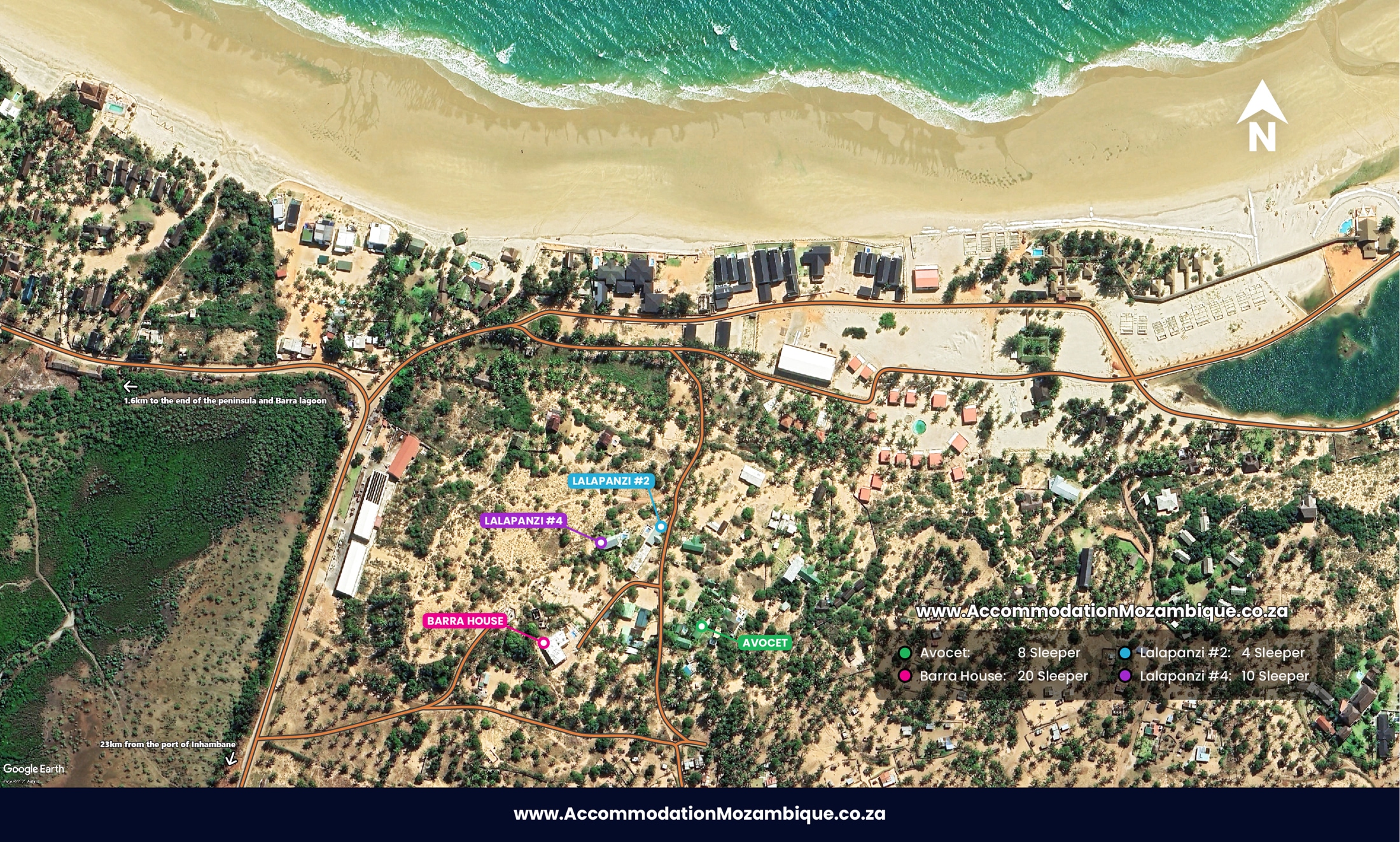 Barra Pescador Lodge LDA lies on the Indian Ocean coast, on the Ponta da Barra peninsula in Inhambane Province, 25 km drive from Inhambane city.