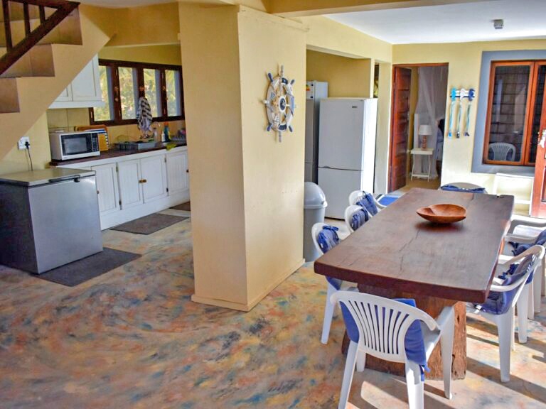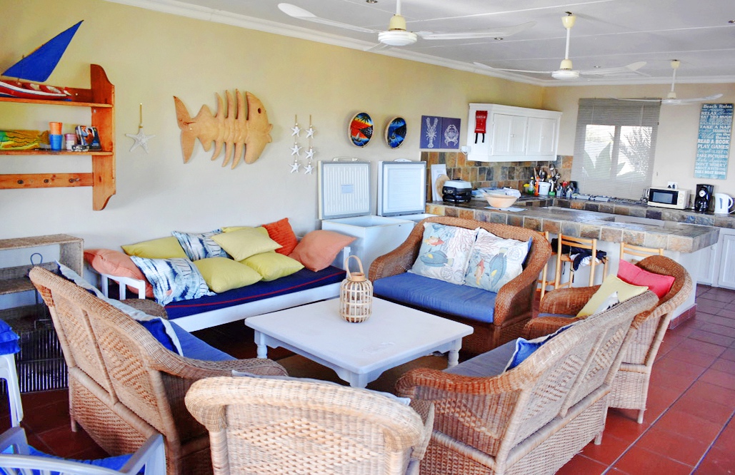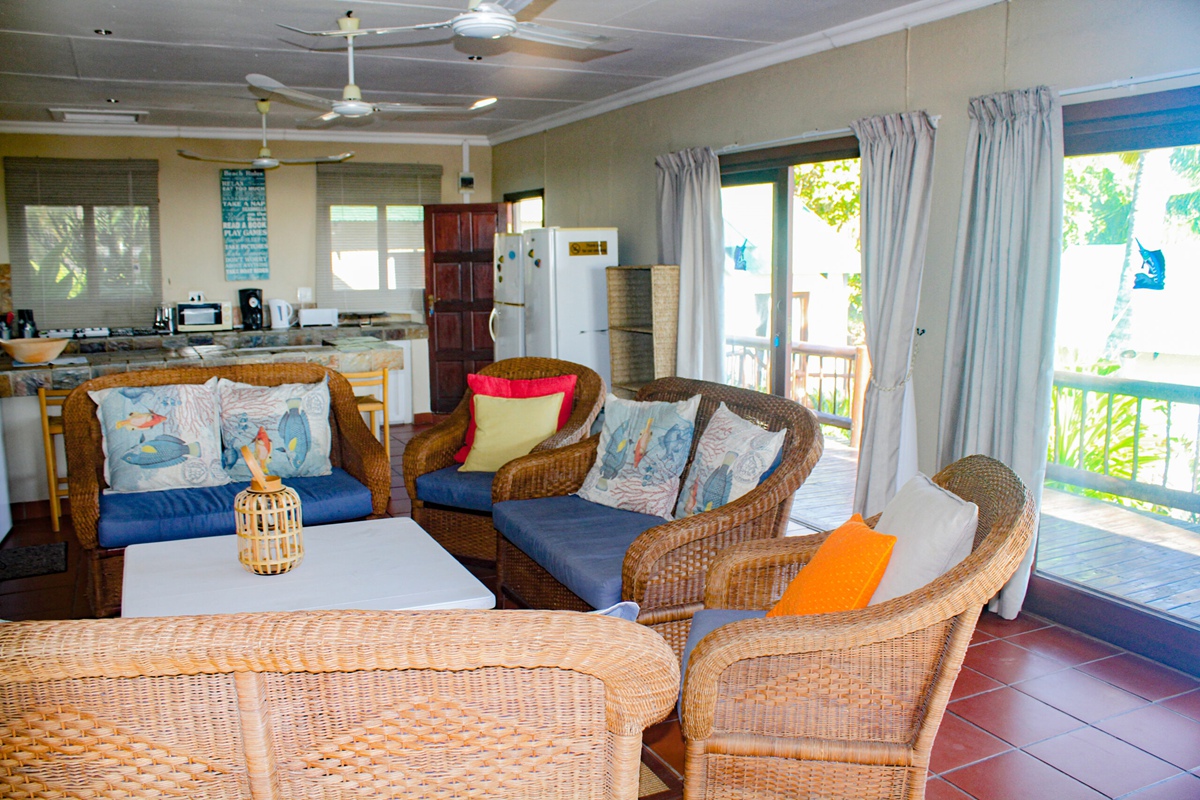 Avocet has a fully equipped kitchen and lounge area, that exits to the patio area. The patio has a built-in braai facility, overlooking the beautiful, lush greenery and ocean.