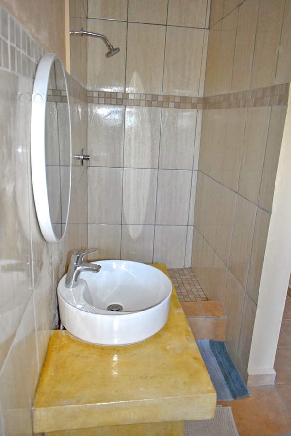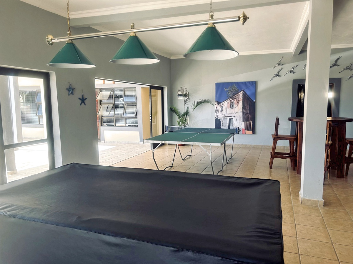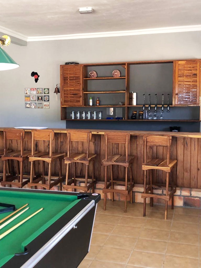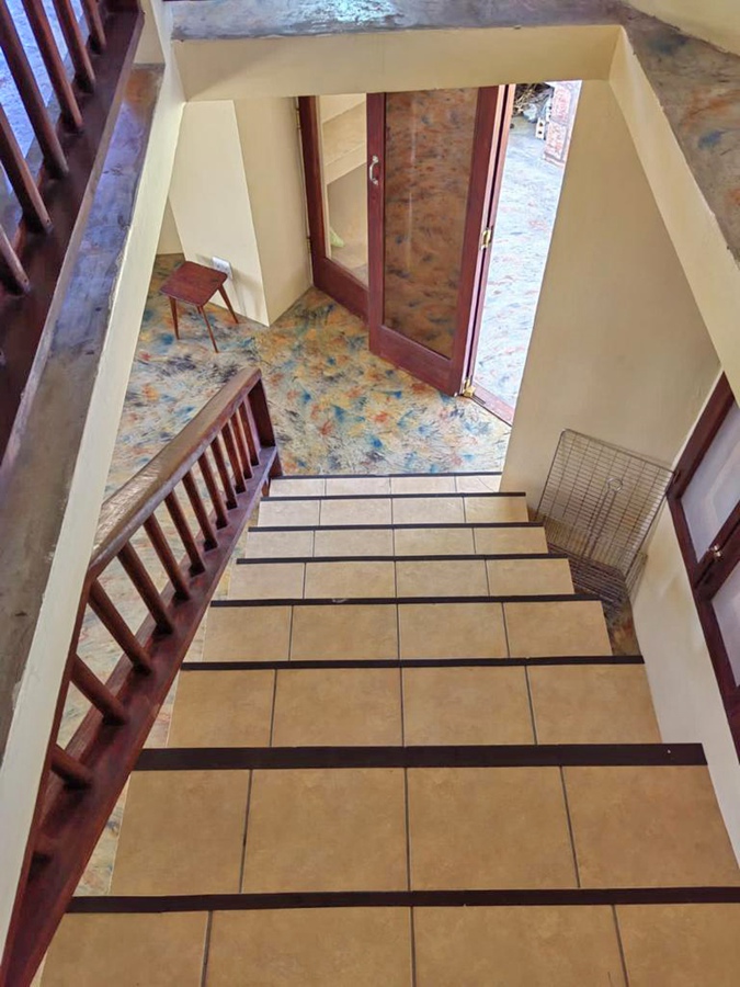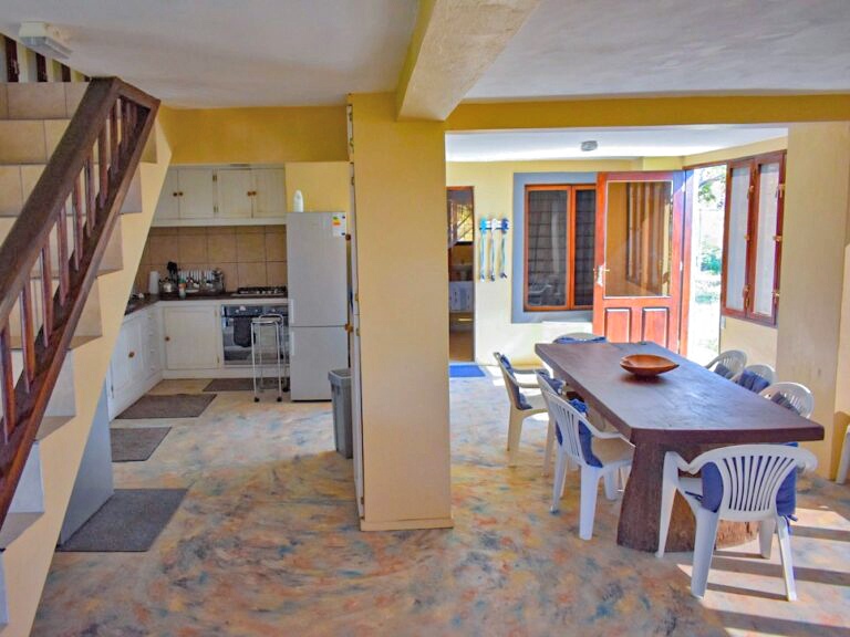 This beautiful house has a fully equipped kitchen and eating area exiting onto the braai area. With two rooms on the first floor, 2 rooms on the ground floor and the fifth room is privately located close to the swimming area.
