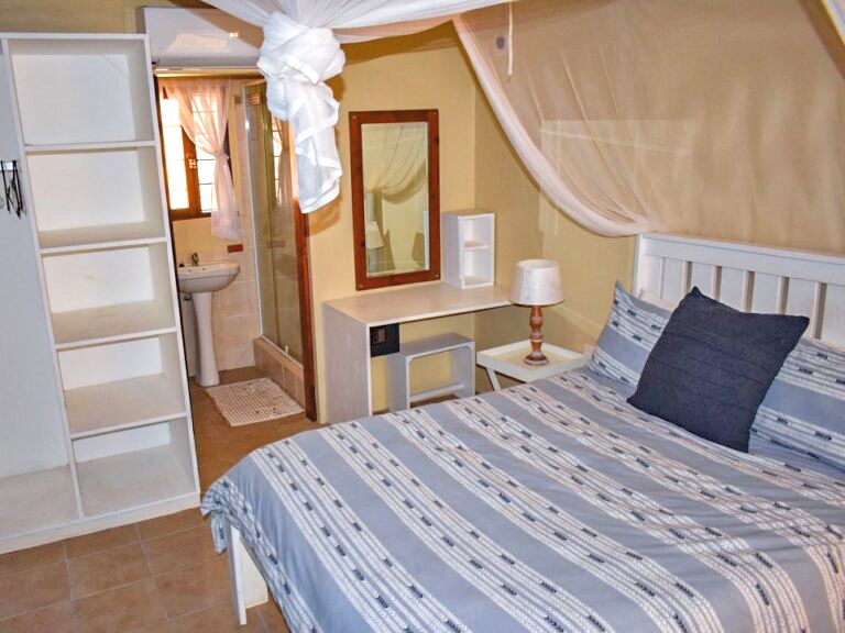 This exquisite retreat features two spacious double bedrooms, sleeping 2 per room. Each featuring a cupboard and accompanied by a private en suite bathroom, ensuring complete comfort and privacy for guests. The centerpiece of Lalapanzi 2 is the private swimming pool, perfect for leisurely dips and soaking up the sun.