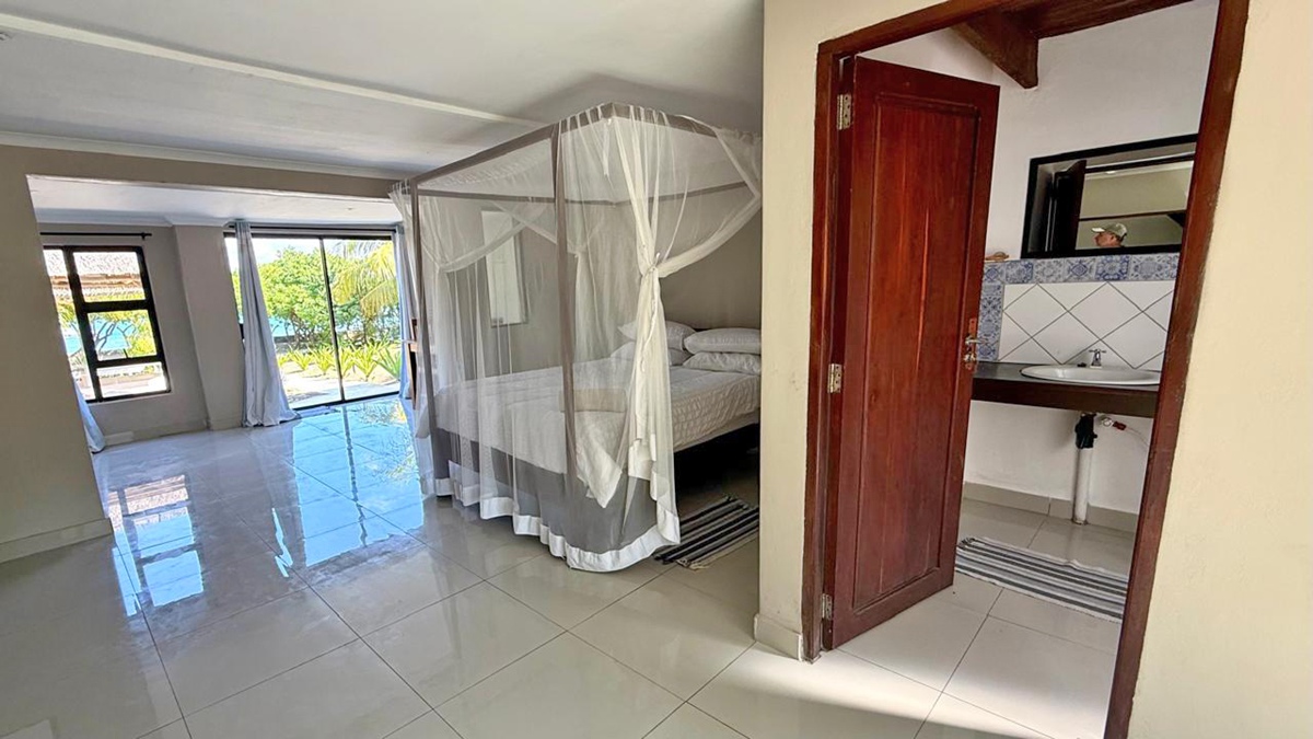 Located just 50 meters away from our exclusive beach, you can wake up every morning to a breathtaking view from your own bed facing the sea. This villa boasts three spacious bedrooms, each with its own en-suite bathroom, and direct access to the swimming pool deck and beach. With a fully equipped kitchen, the option of a personal chef, and a dedicated housekeeper, your every need will be taken care of. Additionally, we have solar electricity with a backup generator and provide complimentary drinking water. Take advantage of our private swimming pool, relax on the expansive pool deck and patio, and enjoy a barbecue in the designated area.