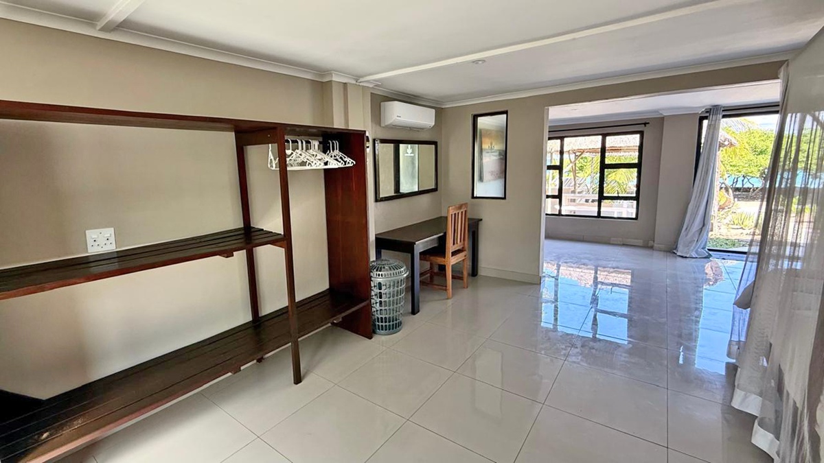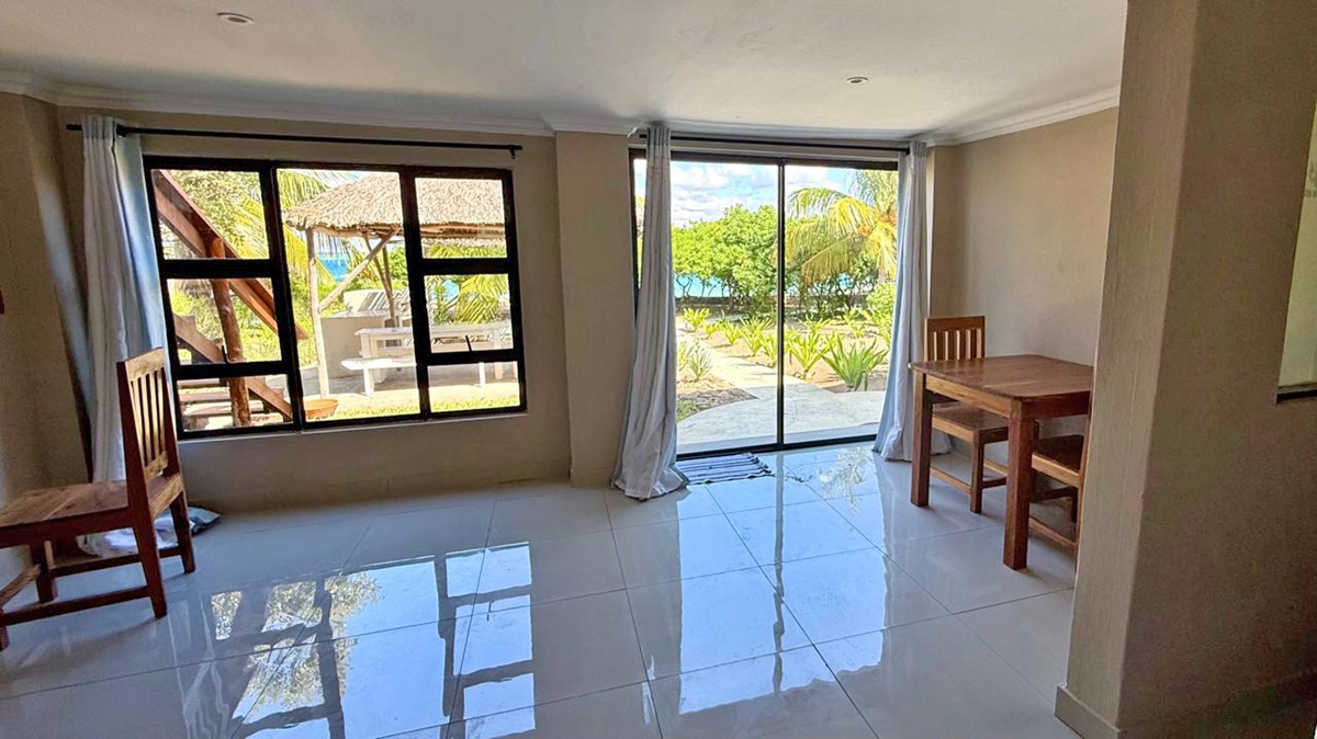 En-suite bedrooms with communal lounge, kitchen and dining area. Each bedroom has an additional single bed. Sleeping max 8 adults and 4 children. The unit is located 50m from our private beach front, Pool and beach Tiki bar. All cabanas have a sea view and a communal BBQ (braai area).