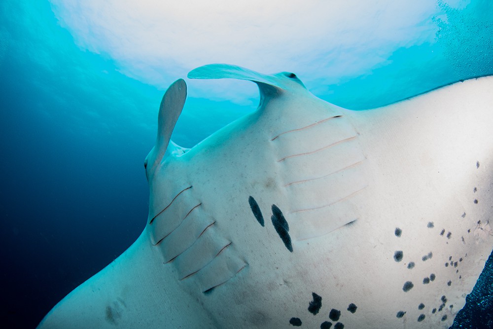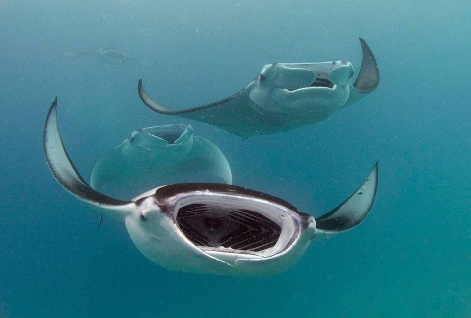 They occupy the upper layers of tropical and sub-tropical waters. Without any motion, the current takes them adrift just beneath the surface, mouth wide open. Their enormous gills filter the plankton out of the water and any waste is disposed off by little parasite fish.