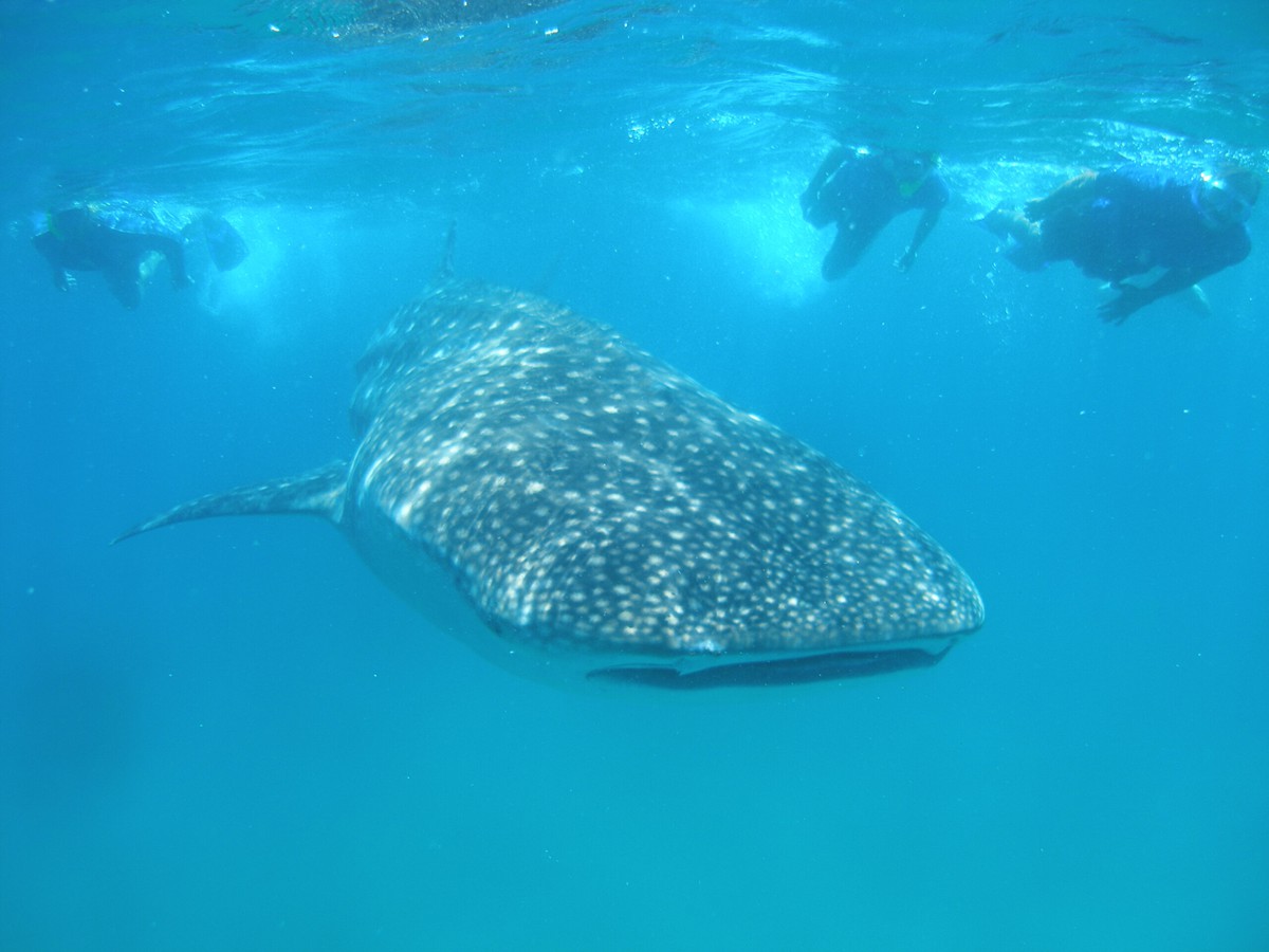 Divemasters give a fifteen minute safety briefing before the launch. Part of this briefing is devoted to educating our swimmers on the importance of the correct interaction between us and the Whale Sharks. There are often chances to swim with Manta Rays and Dolphins on the safari as well. And from June to November here is a chance to add whale-watching to the experience as Humpback Whales cruise the coast on their annual migration. It is an experience not to be missed for both divers and non-divers.