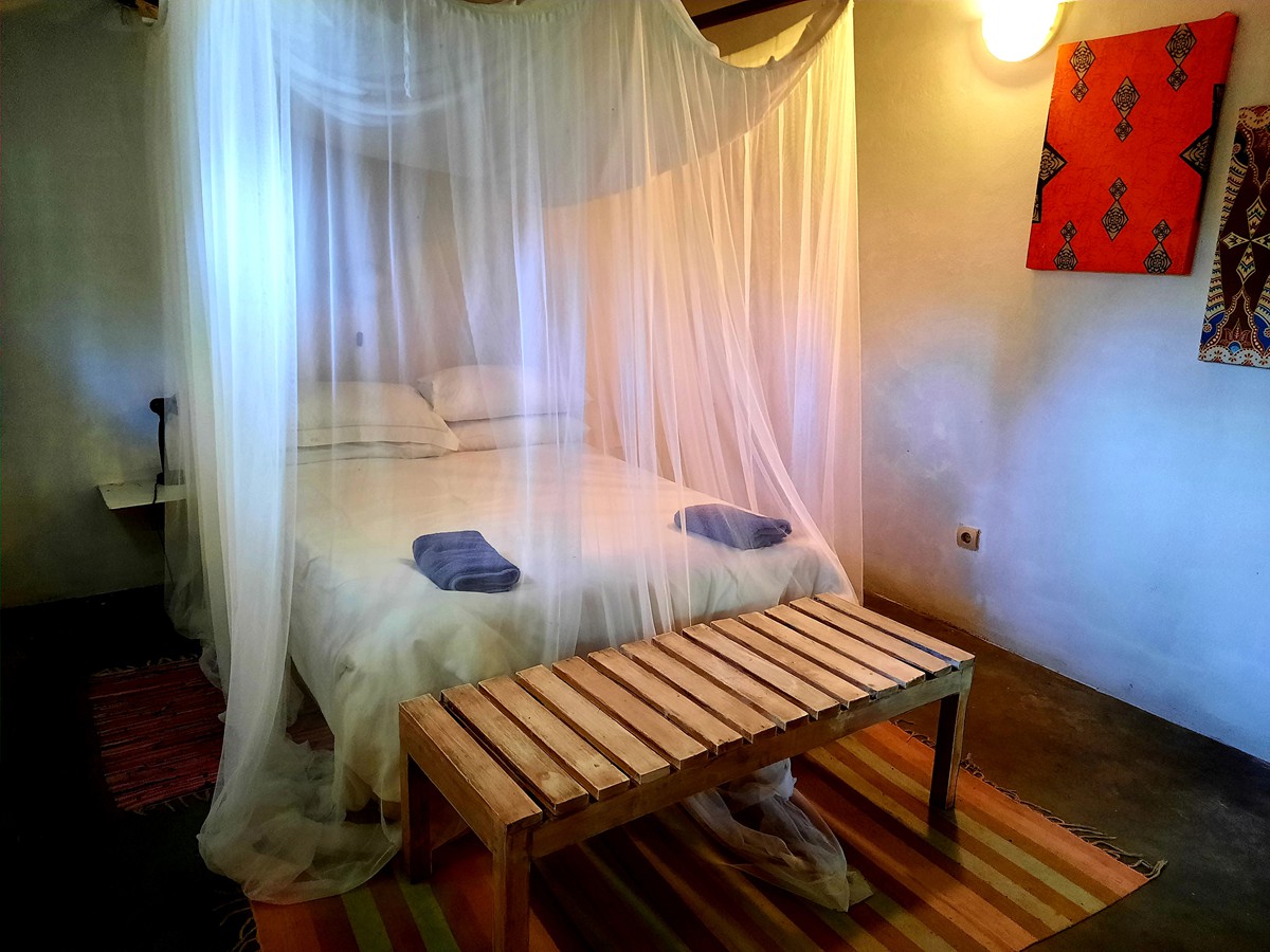 The 8 sleeper beach villa, Casa Golfino, provides three restful double rooms and a comfortable twin room with two single beds. Each bedroom has a mosquito net and also a fan to assist with those warm Mozambican evenings.