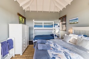 This stylish home comfortably accommodates up to 12 guests in 6 air-conditioned bedrooms. Each bedroom has an en-suite bathroom (with shower) and can access both the outside decks and the interior of the house. The bedrooms are designed with soft, muted tones off set by warm wooden flooring ...