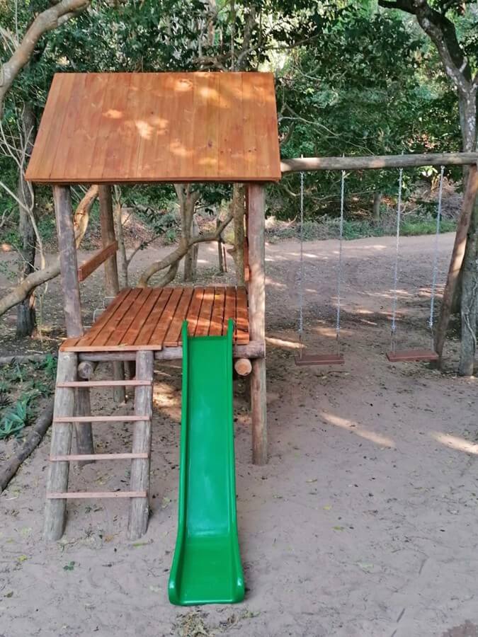 Meu Amor offers a well lit built-in charcoal braai area off the main deck and a children’s play area with a jungle gym and swings.