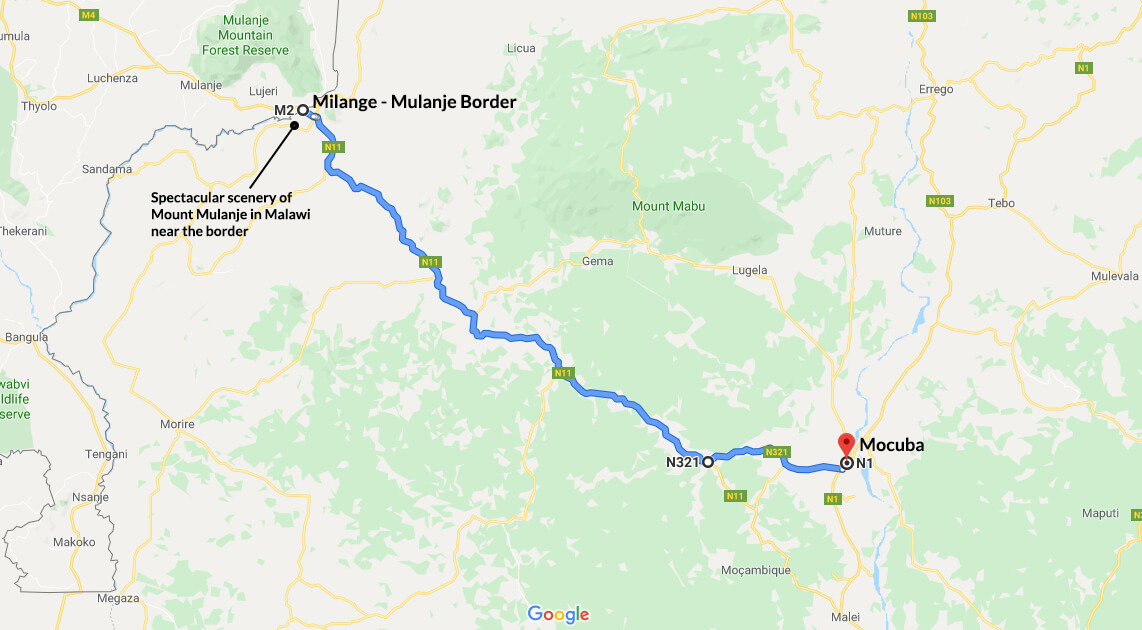 Although 95% of N11 is tarred and in good condition (barring a few potholes), you may come across road construction en-route just after Milange.