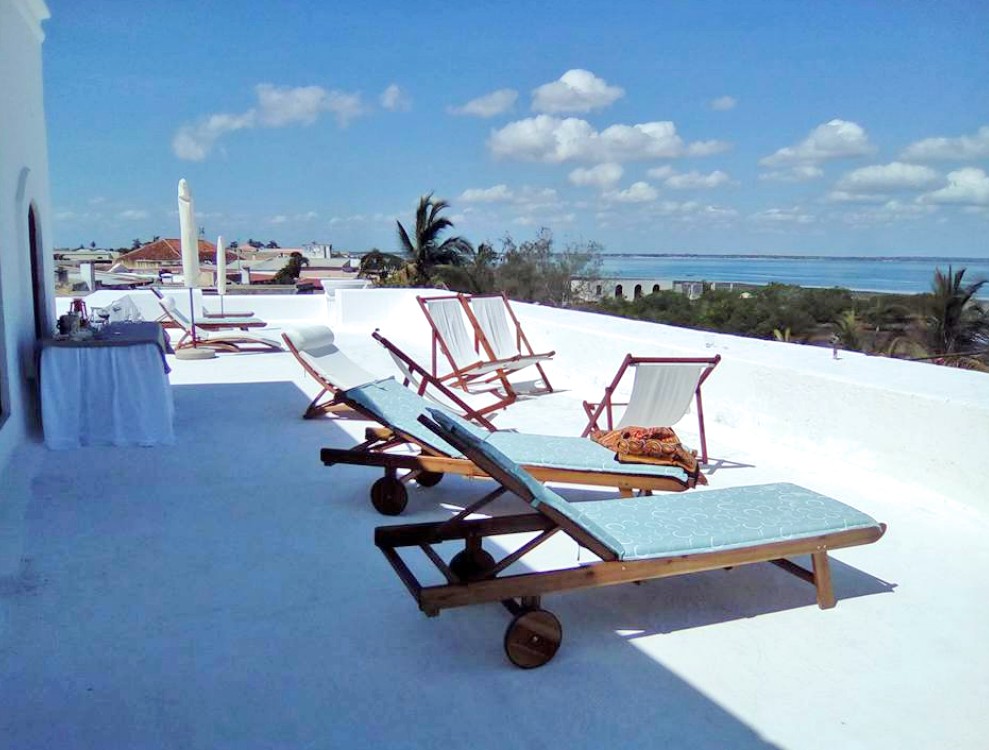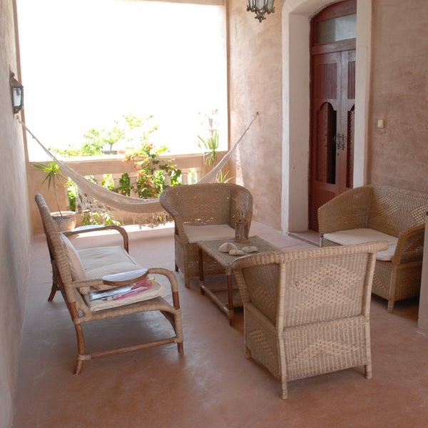 The Terrace of Quitandas, separated from the beach by a garden outside, has a reading room equipped with games and an "honesty bar", where the tranquil sound of the choice between umchill-out or bossa-nova, may start in some of the traditional board games such as M'pale or Tchadji. Also has two balconies, and one of them, "balcony of the index," a truly idyllic setting. The second, facing the inner courtyard, gives it a more private. An inner courtyard, and a magnificent terrace of 150 m2, which allows a full view of the island and where you can switch between a magnificent sunset and an unforgettable night in the pale moonlight.